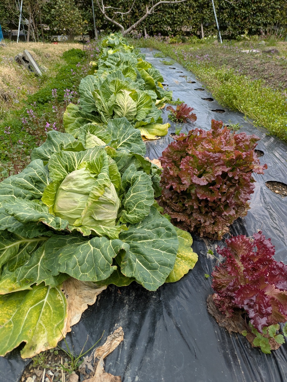 3月20日そろそろ遅霜の心配もなく暖かくなってきました。冬越し野菜が大きく伸びる時期です。