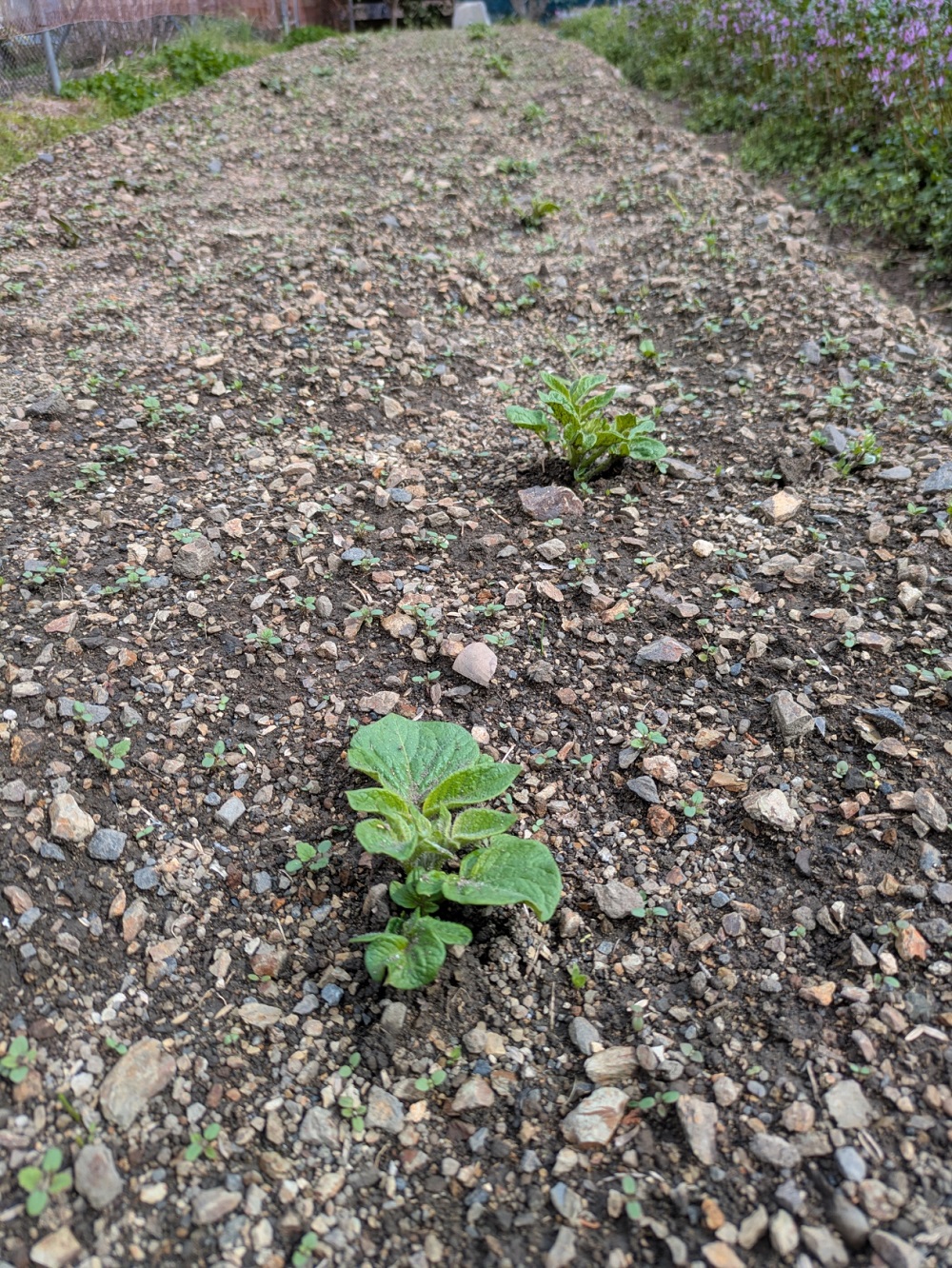 ジャガイモの芽が出てきて気温も上がって来たので畑に植えることにしました。最近雨が降らないので畑の土もサラサラで、植え付け作業が楽でした。
