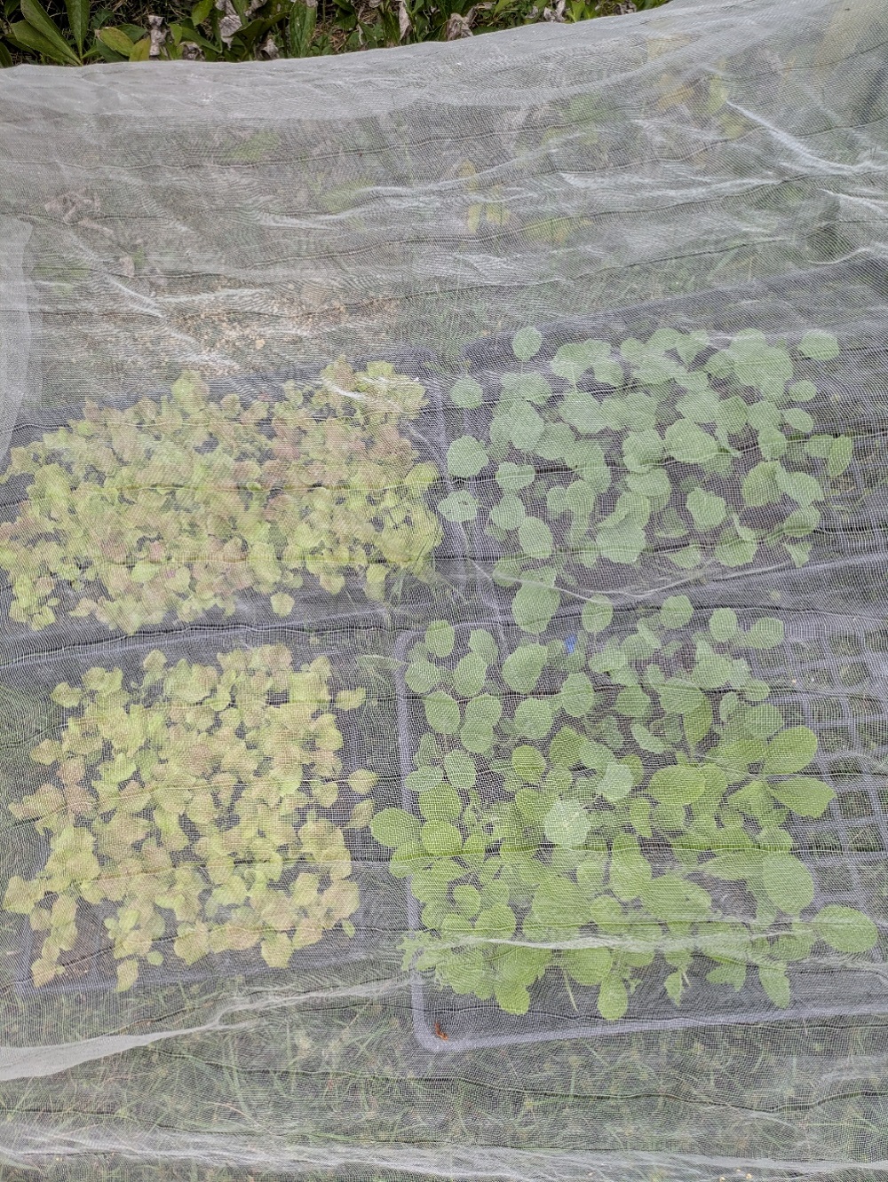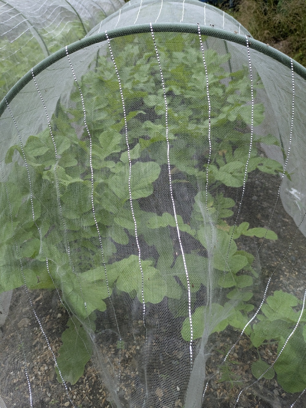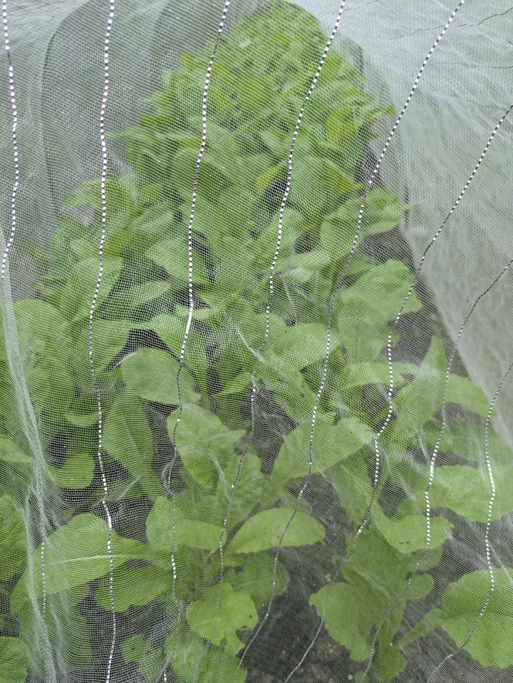種まきからほぼ1ヶ月経ったダイコンです。葉には少し虫食いの穴がありますが、順調に育っています。
