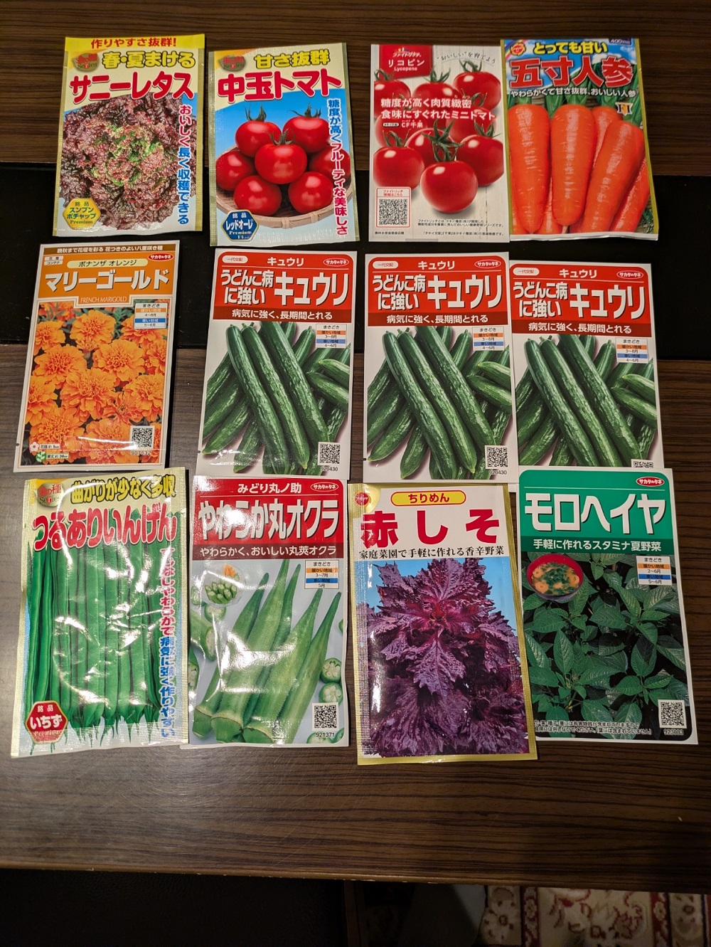 こちらはこれから育てる夏野菜とコンパニオンプランツの種です。もう少し暖かくなったら種まきです。